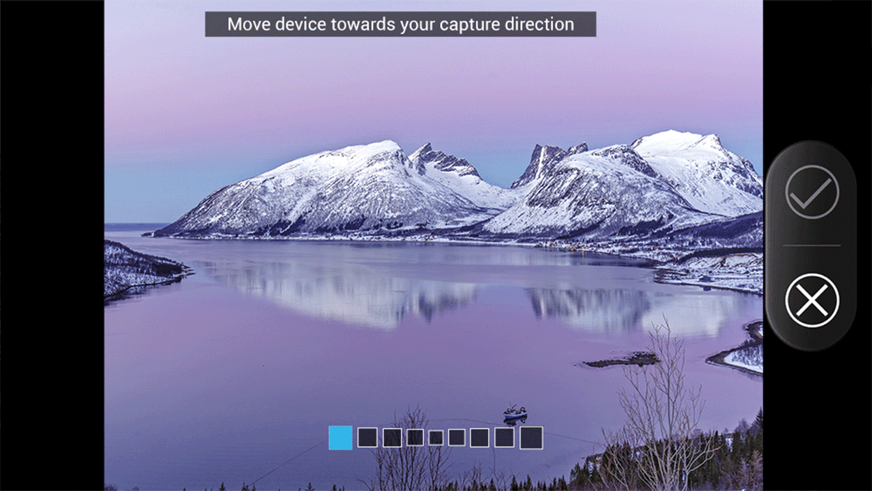 Panorama – wybierz kadr do zdjęcia i delikatnie przesuń aparat z jednej strony do drugiej, dla większej panoramy.