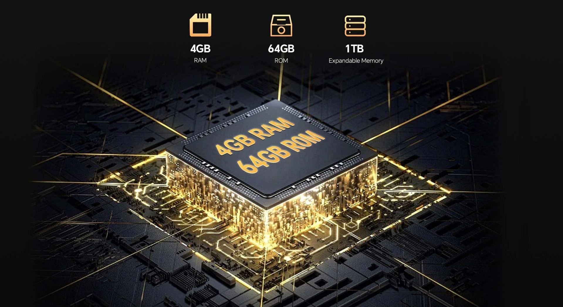 Smartfon jest wyposażony w 4 GB pamięci RAM i 64 GB pamięci wbudowanej, dzięki czemu posiada mnóstwo miejsca na aplikacje, pliki, zdjęcia i filmy. A jeśli to nie wystarczy, możesz rozszerzyć swoją pamięć do 1 TB za pomocą karty TF.