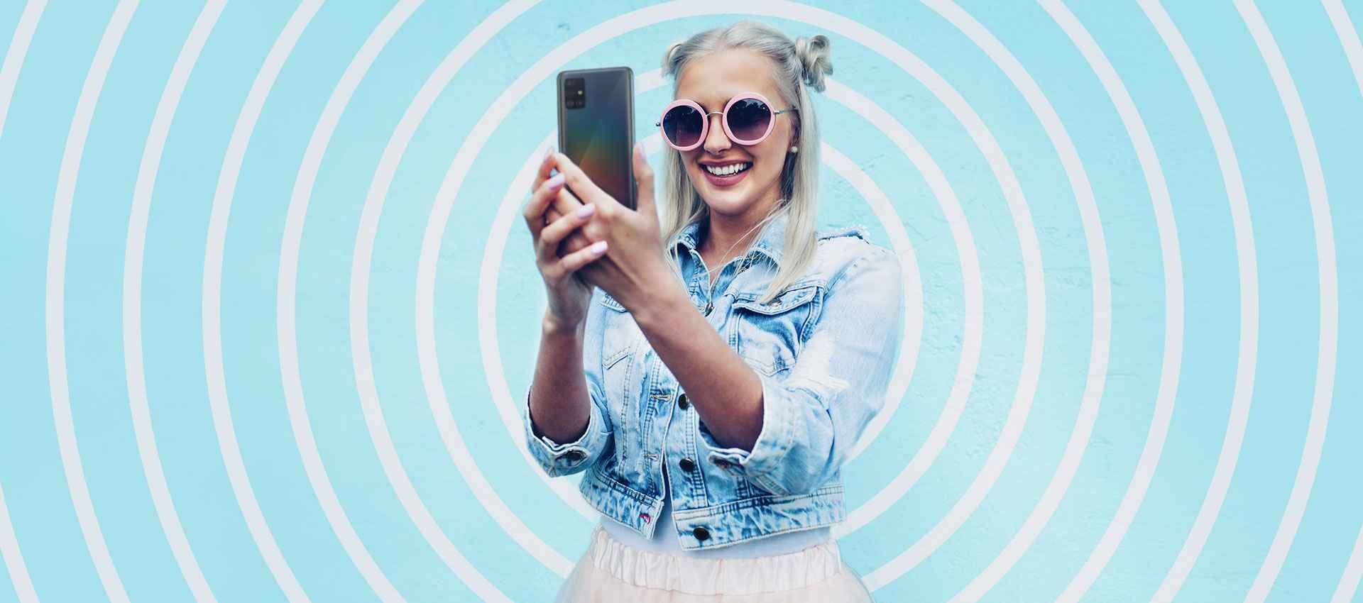 Smukła, praktycznie bezramkowa obudowa Samsung Galaxy A51, zachwyca szerokim ekranem Infinity O z matrycą Super AMOLED. Tył smartfonu zaskakuje holograficznym połyskiem oraz przyciągającym wzrok geometrycznym wzorem. Prawdziwą rewolucją są jednak cztery aparaty główne, otwierające przed tobą zupełnie nową jakość fotografii. Co więcej, mocne podzespoły, wytrzymała bateria oraz wsparcie sztucznej inteligencji sprawiają, że wszystko, co robisz na Galaxy A51 przebiega szybko i sprawnie.
