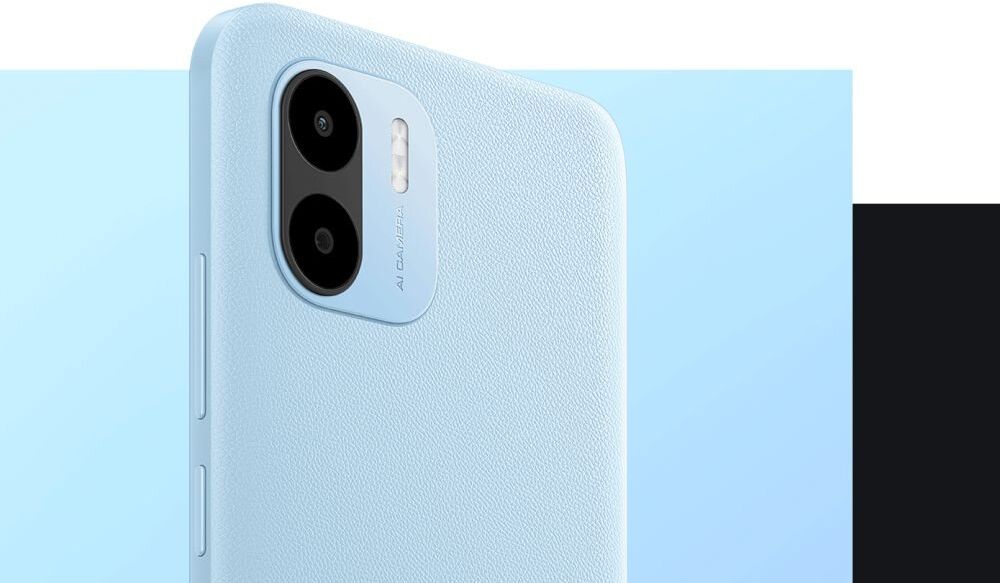 - Redmi A2 ma modną płaską ramkę dostępną w kojących odcieniach czerni, zieleni i błękitu. Teksturowany panel tylny ma elegancki wygląd, który jest odporny na odciski palców i wygodny do trzymania przez długi czas.