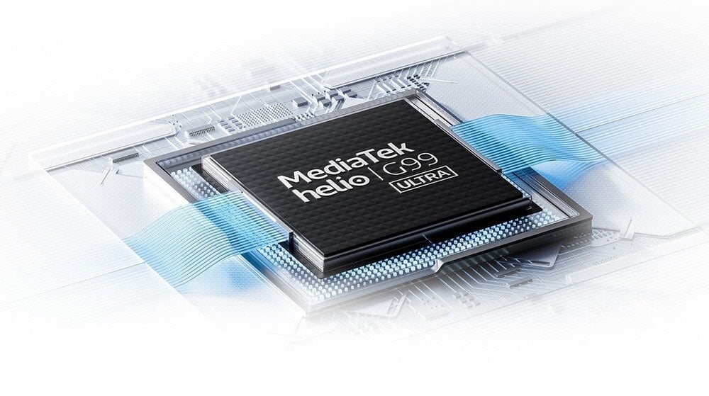 Procesor MediaTek Helio G99-Ultra oferuje potężną moc i efektywność energetyczną, gwarantując płynne użytkowanie w codziennych zadaniach oraz rozrywce.