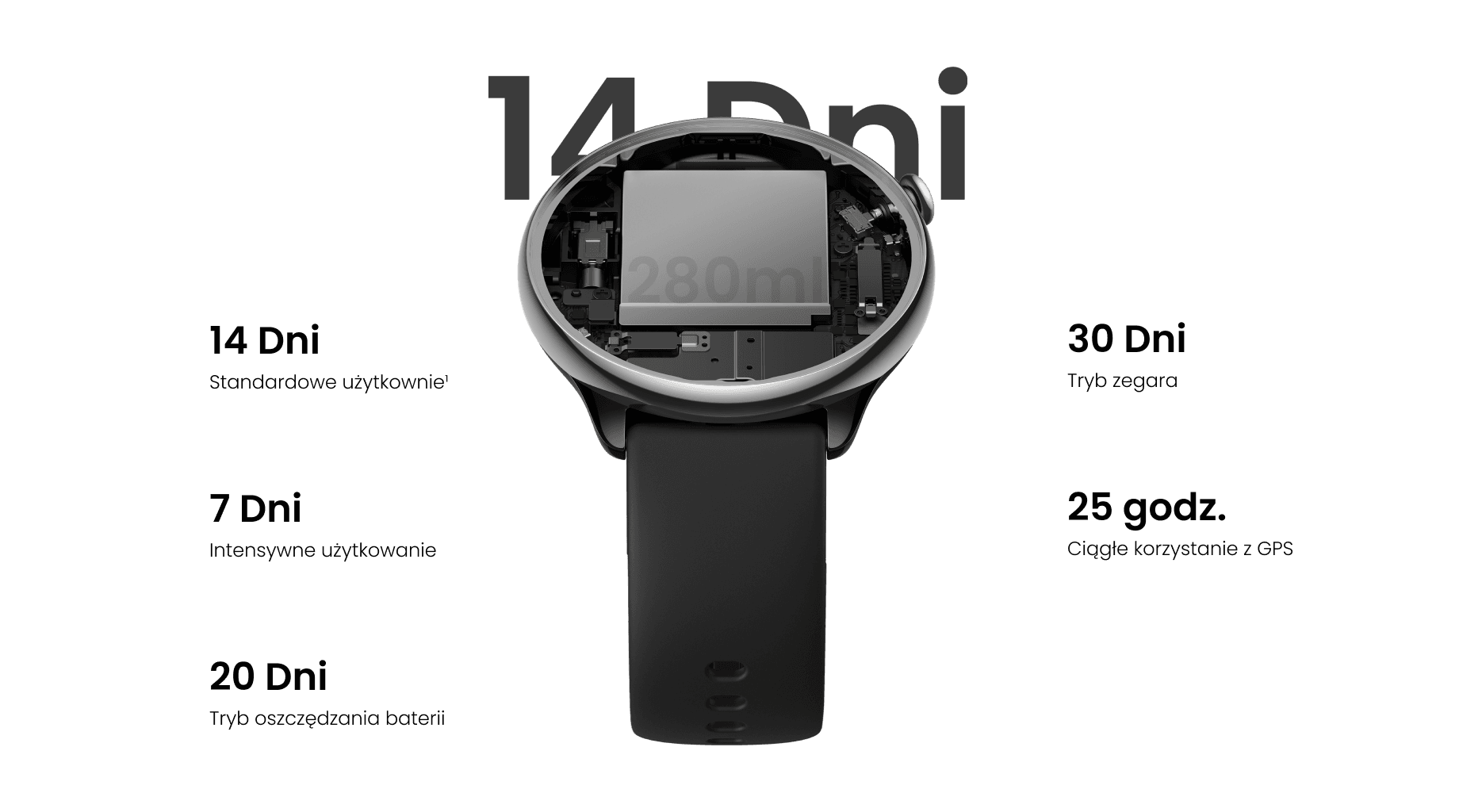 Zasilany przez Zepp OS 2.0 i dwurdzeniowy chip Huangshan 2S, zegarek Amazfit GTR Mini łączy w sobie autorskie oprogramowanie oraz konstrukcję, aby pracować na pełnych obrotach i jednocześnie oszczędzać baterię. Dzięki temu możesz nieprzerwanie walczyć o swoje cele treningowe - nawet przez dwa tygodnie