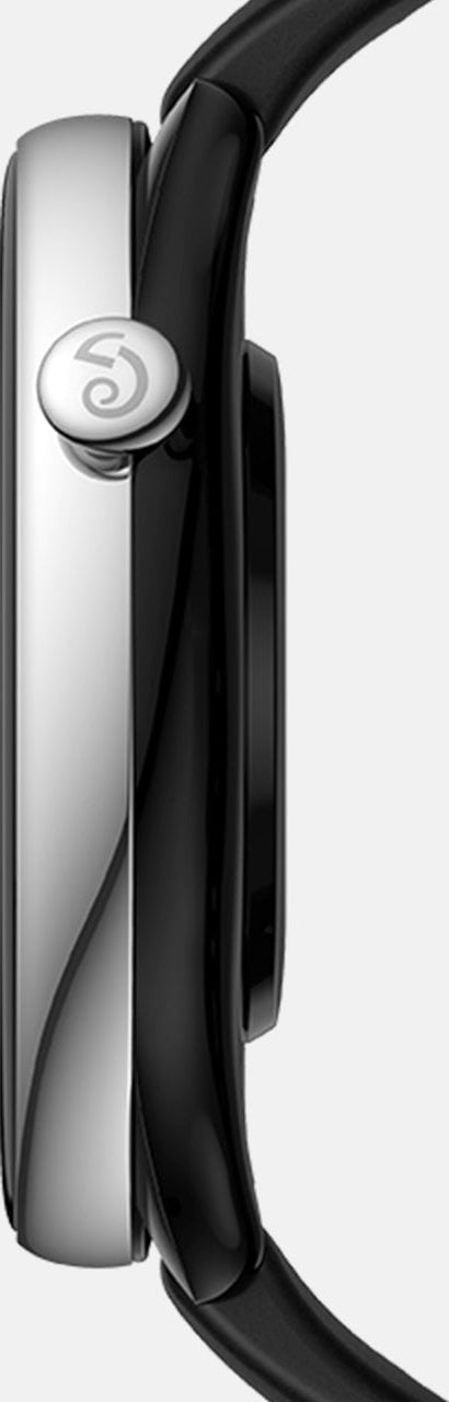 Super płaski i lekki korpus zegarka wykonany jest z połyskującej stali nierdzewnej i posiada przeszklony tylny panel w tym samym stylowym kolorze, co miękki i przyjazny dla skóry pasek silikonowy.
