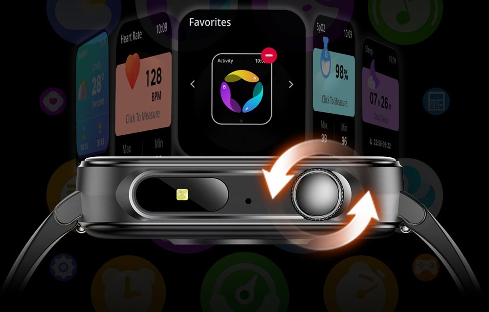Zegarek został wyposażony w 1,83-calowy ekran HD o rozdzielczości 240×284 pikseli, dzięki czemu wszystkie informacje są dobrze widoczne. Częstotliwość odświeżania na poziomie 60 Hz oraz automatyczne dostosowanie jasności zapewniają komfort użytkowania zarówno w jasnym słońcu, jak i po zmroku. Wbudowane motywy pozwalają dopasować wygląd zegarka do własnych upodobań – do wyboru jest ponad 100 różnych tarcz, w tym także personalizowane opcje DIY.