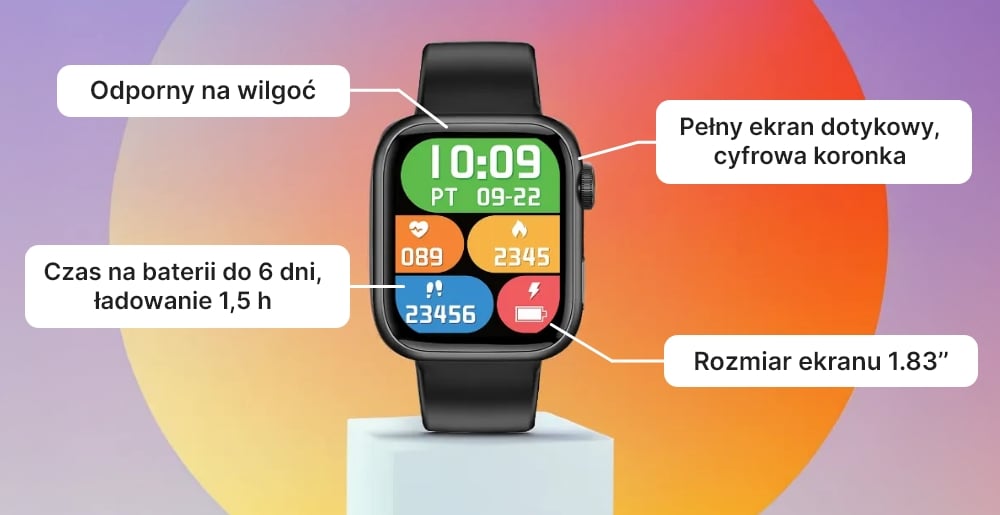 Pulsometr wbudowany w konstrukcję smartwatcha to doskonałe rozwiązanie dla użytkowników, którzy stale walczą o coraz lepsze wyniki sportowe. Ta funkcja pozwoli łatwo sprawdzić, jakie tętno umożliwia przebycie danego dystansu w określonym tempie. Na tej podstawie można opracować najbardziej efektowną technikę treningu. To oczywiście nie jedyne zastosowanie tej technologii. Stały monitoring tętna spoczynkowego pozwoli wykryć ewentualne problemy z ciśnieniem. Wszystko w trosce o Twoje zdrowie.