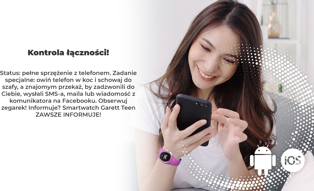 Funkcja Bluetooth umożliwia bezprzewodową komunikację pomiędzy urządzeniami. Wystarczy zsynchronizować inteligentny zegarek ze smartfonem, aby ten za pomocą specjalnej aplikacji przekazał użytkownikowi wszystkie statystyki na temat aktywności treningowej, jakości snu, czy przebytego dystansu. Ta technologia pozwala również na zdalne zarządzanie ustawieniami smartwatcha. Połączenie działa bardzo szybko i sprawdza się doskonale w każdych warunkach. Dzięki temu możesz spersonalizować zegarek na wiele sposobów.