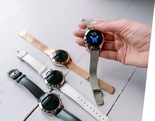 Zgrabne połączenie eleganckiego smartwatcha damskiego ze smartwatchem sportowym. Wyśmienicie zaprezentuje się zarówno na uroczystej kolacji, jak i na biznesowym spotkaniu. A po godzinach… możesz w mgnieniu oka zmienić metalową bransoletkę na miękki pasek i ćwiczyć pod opieką „osobistego trenera”, który skontroluje Twój puls, a także przeliczy pokonany dystans na spalone kalorie. Bez trudu „dogada się” z Twoim smartfonem i będzie powiadamiać Cię o przychodzących połączeniach i wiadomościach (również z Facebooka i Twittera). Możesz go także użyć do sterowania aparatem w smartfonie (niepotrzebny kijek do selfie!). I na dokładkę jest całkowicie wodoszczelny!