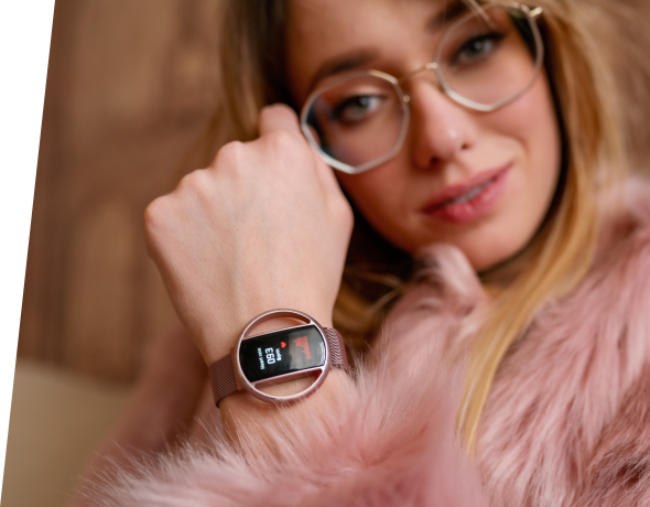 Elegancki, gustowny i… kuszący! Ten smartwatch damski ma w sobie zdecydowanie coś więcej, niż „tylko” zaawansowaną technologię. Może stać się doskonałym podkreśleniem Twojego stylu i charakteru. Ale nie myśl, że ten zegarek jest tylko na oficjalne okazje. Posiada bowiem mnóstwo cech smartwatcha sportowego: może towarzyszyć Ci w treningu, kontrolując Twój puls, ciśnienie i natlenienie krwi. Zmierzy także przebyty dystans i policzy spalone kalorie. I jest przy tym wodoodporny! To naprawdę wielozadaniowe urządzenie, a jego sekrety odkrywać będziesz z prawdziwą przyjemnością.