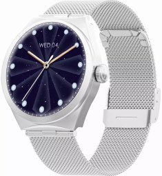 Smartwatch GT25-7 wyróżnia się eleganckim, srebrnym wykończeniem oraz solidną konstrukcją. Jego nowoczesny wygląd sprawia, że doskonale komponuje się z każdą stylizacją, a stalowa bransoleta dodaje mu klasy. To idealny wybór dla tych, którzy pragną łączyć styl z nowoczesnymi technologiami.