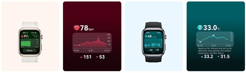 Huawei Watch D2 oferuje zaawansowane funkcje monitorowania zdrowia, w tym precyzyjny pomiar tętna, poziomu SpO2 oraz monitorowanie jakości snu. Dzięki czujnikom optycznym nowej generacji, smartwatch rejestruje parametry zdrowotne w czasie rzeczywistym, dostarczając kompleksowych danych o Twojej kondycji. Monitorowanie snu z funkcją TruSleep™ analizuje różne fazy snu i dostarcza spersonalizowane porady, które pomagają poprawić jakość wypoczynku. Zegarek monitoruje również poziom stresu, a funkcje relaksacyjne, takie jak trening oddechowy, pomagają w utrzymaniu równowagi psychicznej.