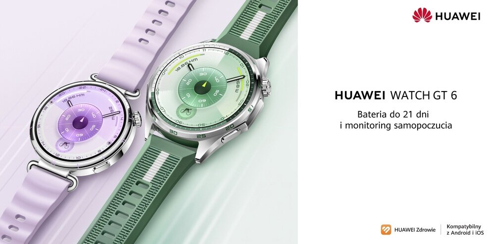 Huawei Watch GT 6 to smartwatch, który wesprze Cię w odnalezieniu własnego rytmu – zarówno gdy dopiero zaczynasz swoją przygodę z aktywnością, jak i wtedy, gdy chcesz wprowadzić do swojego życia więcej balansu i zdrowych nawyków. Nie musisz też przejmować się częstym ładowaniem. Bateria zapewnia zasilanie nawet do 21 dni. Smartwatch monitoruje Twój nastrój i aktywność w czasie rzeczywistym. Zaawansowane tryby sportowe oraz precyzyjny GPS z możliwością planowania tras ułatwią Ci orientację w terenie – w górach, podczas biegania czy jazdy na rowerze. Dodatkowo oferuje płatności zbliżeniowe, opcję szybkich odpowiedzi na wiadomości oraz kompatybilność z systemami Android i iOS – ten zegarek zawsze sprosta Twoim wymaganiom.