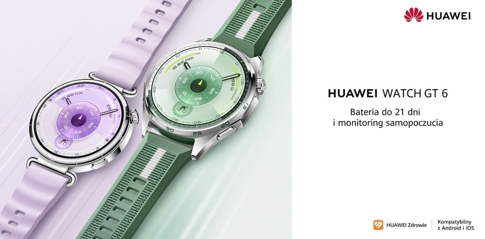 Huawei Watch GT 6 to smartwatch, który wesprze Cię w odnalezieniu własnego rytmu – zarówno gdy dopiero zaczynasz swoją przygodę z aktywnością, jak i wtedy, gdy chcesz wprowadzić do swojego życia więcej balansu i zdrowych nawyków. Nie musisz też przejmować się częstym ładowaniem. Bateria zapewnia zasilanie nawet do 21 dni. Smartwatch monitoruje Twój nastrój i aktywność w czasie rzeczywistym. Zaawansowane tryby sportowe oraz precyzyjny GPS z możliwością planowania tras ułatwią Ci orientację w terenie – w górach, podczas biegania czy jazdy na rowerze. Dodatkowo oferuje płatności zbliżeniowe, opcję szybkich odpowiedzi na wiadomości oraz kompatybilność z systemami Android i iOS – ten zegarek zawsze sprosta Twoim wymaganiom.