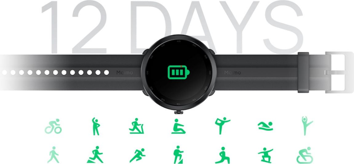 Maimo Watch R automatycznie wykrywa i zaczyna rejestrować dyscypliny sportowe takie jak: bieganie na świeżym powietrzu, spacer, wioślarstwo oraz śledzi Twoje tempo.