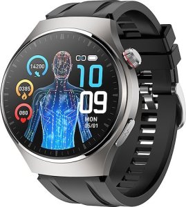 Smartwatch oferuje szereg funkcji zdrowotnych, w tym monitorowanie tętna, ciśnienia krwi, natlenienia krwi oraz poziomu glukozy. Dodatkowo, użytkownicy mogą korzystać z pomiaru EKG oraz analizy zmienności rytmu serca, co czyni go znakomitym narzędziem do śledzenia stanu zdrowia.