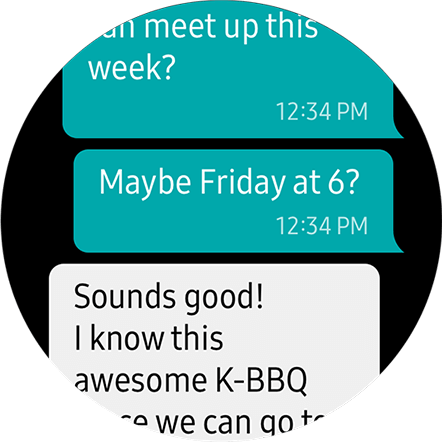 Gdy otrzymasz nową wiadomość, Galaxy Watch3 wyświetli historię rozmowy, żebyś mógł ją kontynuować bez sięgania po telefon. Możesz też bez dodatkowego wysiłku przeglądać zdjęcia dla zachowania odpowiedniej motywacji podczas biegu.