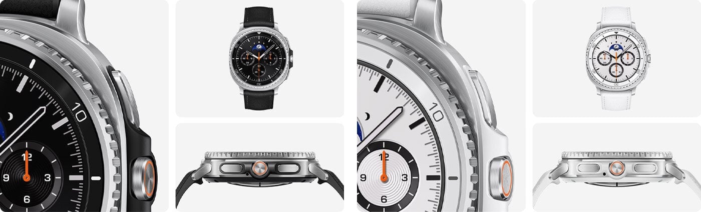 Poczuj satysfakcję płynącą z precyzyjnej, mechanicznej kontroli. W modelu Galaxy Watch 8 Classic powraca kultowy, obrotowy pierścień, który jest nie tylko pięknym detalem, ale przede wszystkim niezwykle funkcjonalnym narzędziem do intuicyjnego przewijania menu i powiadomień. Koperta o unikalnym kształcie zaokrąglonego kwadratu, w połączeniu z ulepszonym systemem Dynamic Lug, sprawia, że zegarek idealnie dopasowuje się do nadgarstka, zapewniając wyjątkowy komfort noszenia przez cały dzień. To połączenie estetyki i ergonomii, które docenisz w każdej sytuacji.