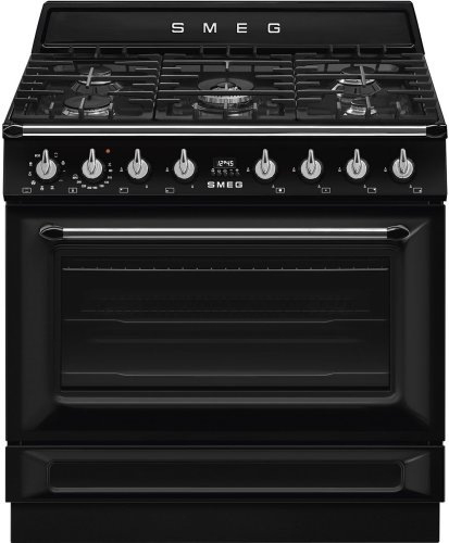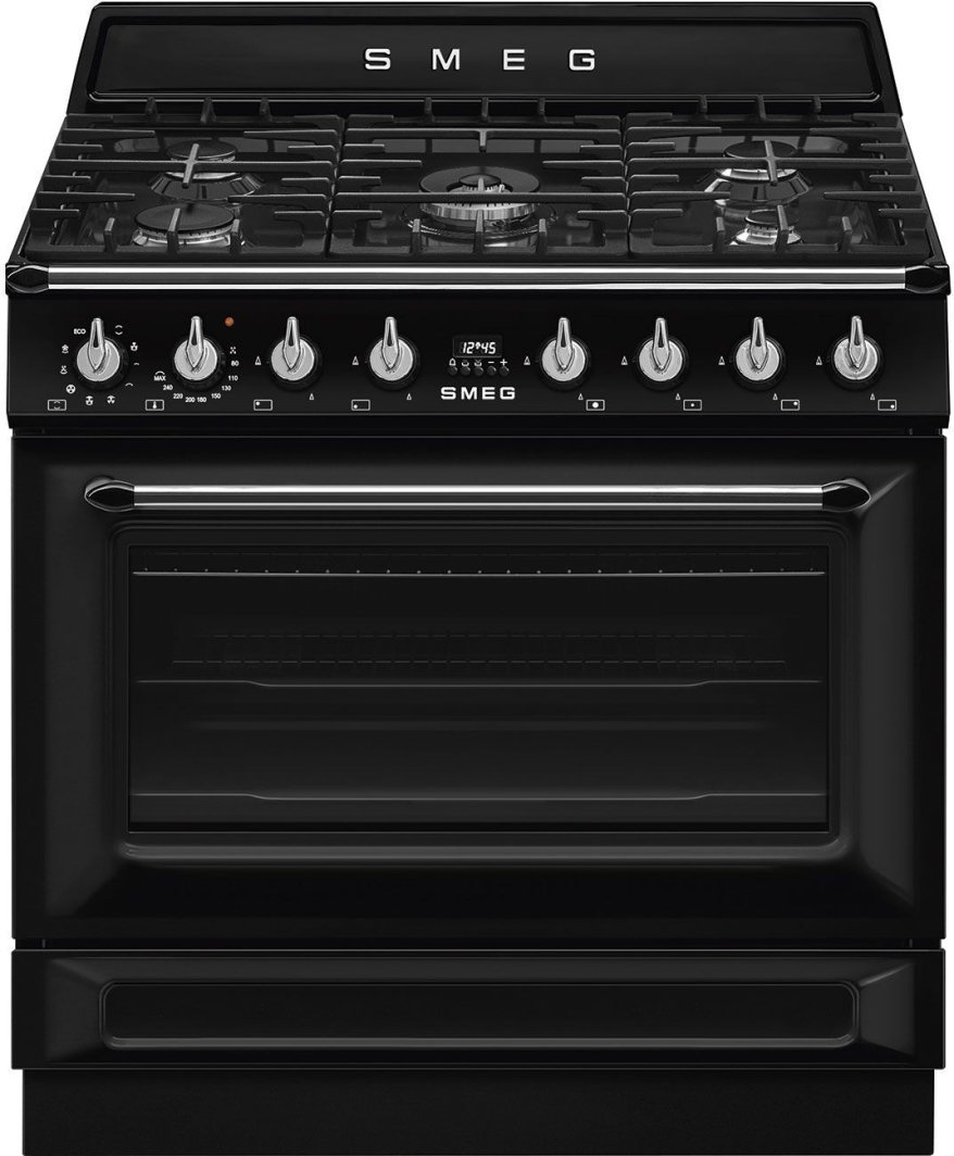 Kuchnia Smeg TR90GMBL została wyposażona w nowoczesną płytę gazową z pięcioma palnikami, co umożliwia jednoczesne gotowanie kilku potraw. Żeliwny ruszt zapewnia stabilność i trwałość, a zintegrowana zapalarka w pokrętle ułatwia uruchamianie palników, co czyni gotowanie jeszcze bardziej komfortowym.