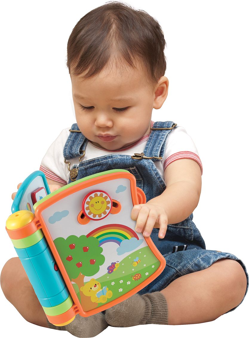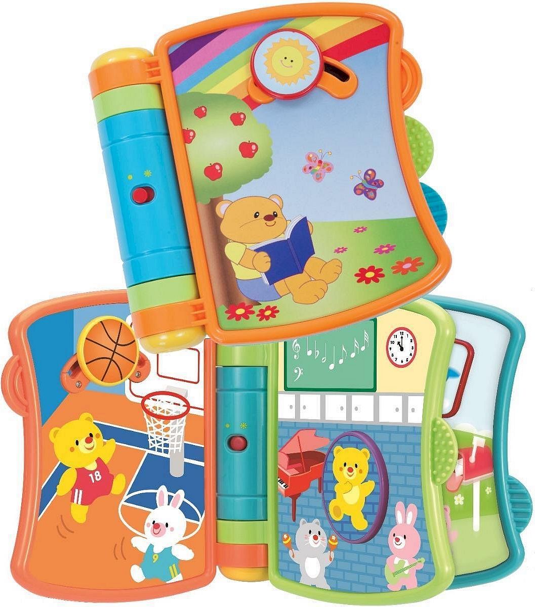 Poczytaj mi Mamo to interaktywna książeczka pełna zabawy. Poprzez ruchome elementy i żywą kolorystykę zachęca dziecko do aktywności. Każda strona książeczki przedstawia inną historię, a dzięki interakcji (ruchome elementy – można wciskać, przekręcać oraz przesuwać) wpływa na rozwój dziecka i jego zmysły poznawcze. Dodatkowo podczas przewracania stron książeczka wygrywa radosne dźwięki i melodie. Zabawka posiada także trzy kolorowe uchwyty o różnej fakturze, co uwrażliwi zmysł dotyku dziecka.