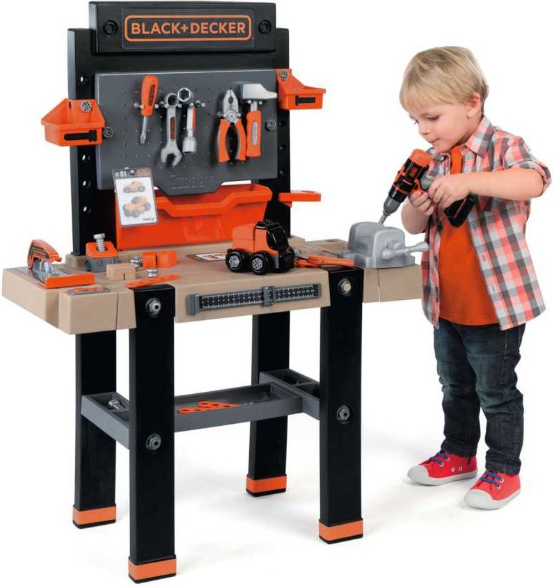 Smoby Black & Decker to seria licencyjnych narzędzi i warsztatów stworzona z myślą o dzieciach uwielbiających kreatywną i konstruktywną zabawę w majsterkowanie. Zabawka pozwoli dzieciom poczuć emocje związane z prawdziwą pracą w warsztacie, bądź po prostu - da szansę wcielenia się w rolę dorosłych, którzy także na co dzień korzystają z narzędzi tej firmy, wykonując różnego rodzaju prace w gospodarstwie domowym.