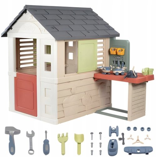 Domek ogrodowy S.LIFE NATURE* PLAYHOUSE + WORKSHOP od producenta Smoby to doskonałe miejsce do zabawy dla dzieci powyżej 2. roku życia. Zintegrowany warsztat pozwala maluchom naśladować dorosłych oraz rozwijać swoje umiejętności manualne. Domek łączy w sobie funkcje zabawy i nauki, oferując bezpieczną przestrzeń do kreatywnej zabawy na świeżym powietrzu.