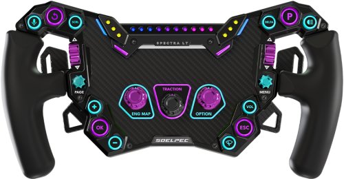 SOELPEC Spectra LT oferuje 17 dotykowych przycisków, dwa przełączniki 7-pozycyjne oraz trzy centralne enkodery z funkcją przycisku, co umożliwia pełną personalizację sterowania. Dzięki tym funkcjom każdy gracz może dostosować kierownicę do swoich indywidualnych potrzeb i preferencji.