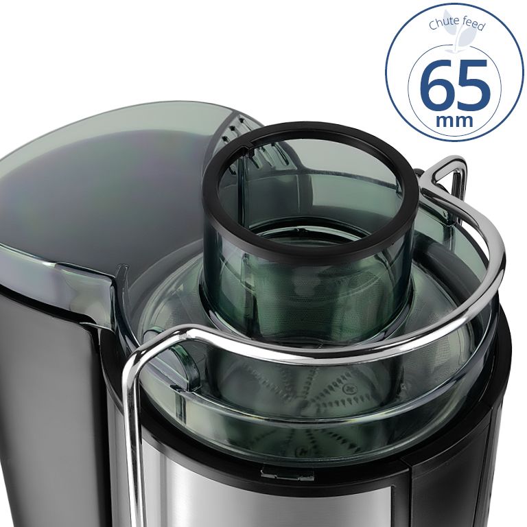 Szeroka na 65mm szyjka umożliwia załadowanie całego owocu np. Jabłka.