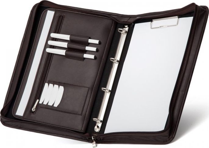 Marka SOLOME powstała z myślą o nowoczesnych mężczyznach, ceniących unikatowy styl i modne wzornictwo. W naszej ofercie znajduje się szeroki wybór modeli toreb: listonoszki, torby miejskie, torby podróżne, torbach na laptopa, aktówki i nesesery. Jesteśmy producentem marki SOLOME. Wszystkie nasze produkty są ręcznie szyte, wyprodukowane w Polsce i objęte 2-letnią gwarancją.Biwuar jest zarówno funkcjonalnym, jak i gustownym dodatkiem współczesnego, zorganizowanego mężczyzny. Dzięki jego prostej budowie, a także praktycznemu wnętrzu stanowi on nie lada ułatwienie w walce z wszechobecnym chaosem, który wkrada się nieraz do dokumentów. Charakterystyka:- biwuar marki SOLOME- klips na dokumenty oraz mechanizm ringowy na koszulki- jest w stanie pomieścić dokumenty formatu A4- posiada 2 komory w tym jedna zapinana na zamek- wewnatrz miejsce na wizytówki oraz długopisy- stworzony ze skóry ekologicznej* - przyjemnego w dotyku materiału, odpornego na przypadkowe otarcia- idealna dla przedstawicieli handlowych, kierowców i innych zawodów, które wymagają nienagannej organizacji pracy- gwarancja na 24 miesiące- kolor: brązowy- Wymiary:- Wysokość: 35 cm- Szerokość: 27 cm- Szerokość podstawy: 4,5 cm...