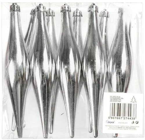 W zestawie znajduje się 10 sztuk sopli, co umożliwia stworzenie efektownej dekoracji. Każdy sopel ma wymiary 154x153 mm, a ich łączna waga z opakowaniem wynosi 0,5 kg. To idealne rozwiązanie dla tych, którzy chcą w prosty sposób ozdobić swoje wnętrza na święta.