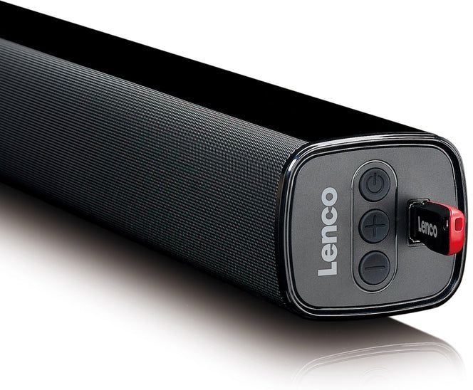 Lenco SB-080 to soundbar mierzący 90 cm o mocy 80W RMS, Bluetooth®, USB oraz wbudowany subwoofer z HDMI. Ciesz się filmami, grami wideo, serialami i programami telewizyjnymi, jak nigdy dotąd, dzięki temu potężnemu soundbarowi Lenco. Poczuj się jak w kinie i bądź świadkiem największych filmowych przygód. Podłącz bezprzewodowo smartfon i tablet do tego soundbara, korzystając z technologii Bluetooth® i daj się porwać kinowemu dźwiękowi wydobywającemu się z Lenco SB-080.