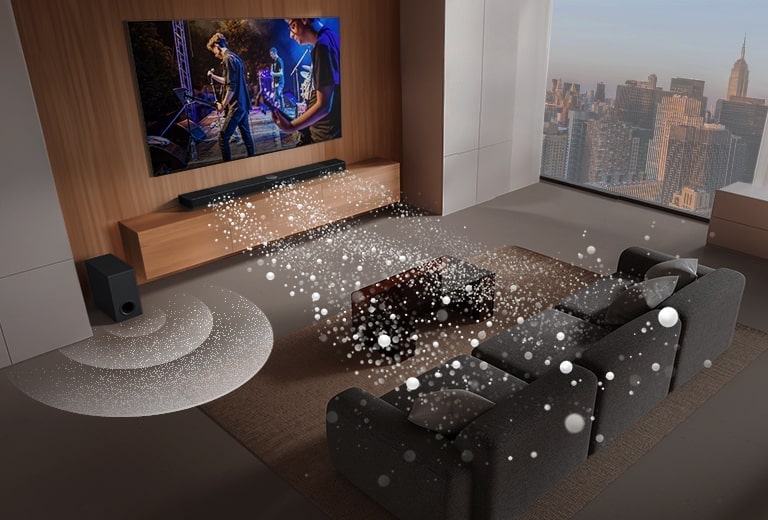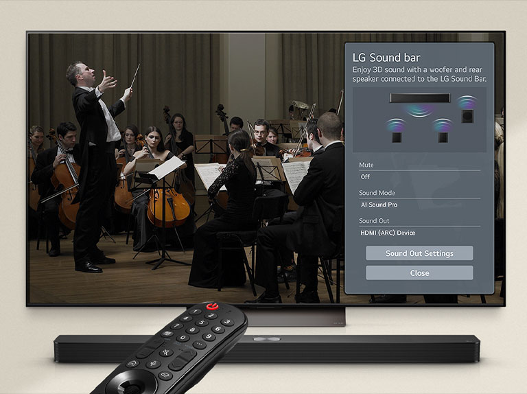 Soundbar LG S60T został zaprojektowany, aby doskonale współpracować z telewizorami LG. Wykorzystuje technologię AI Sound Pro, która inteligentnie analizuje odtwarzane treści (filmy, wiadomości, muzykę, sport) i automatycznie optymalizuje ustawienia dźwięku, zapewniając najwyższą jakość brzmienia. Funkcja WOW Interface (lub SimpLink/HDMI CEC) umożliwia sterowanie soundbarem bezpośrednio za pomocą pilota do telewizora LG oraz dostęp do ustawień audio na ekranie TV, co maksymalizuje wygodę użytkowania.