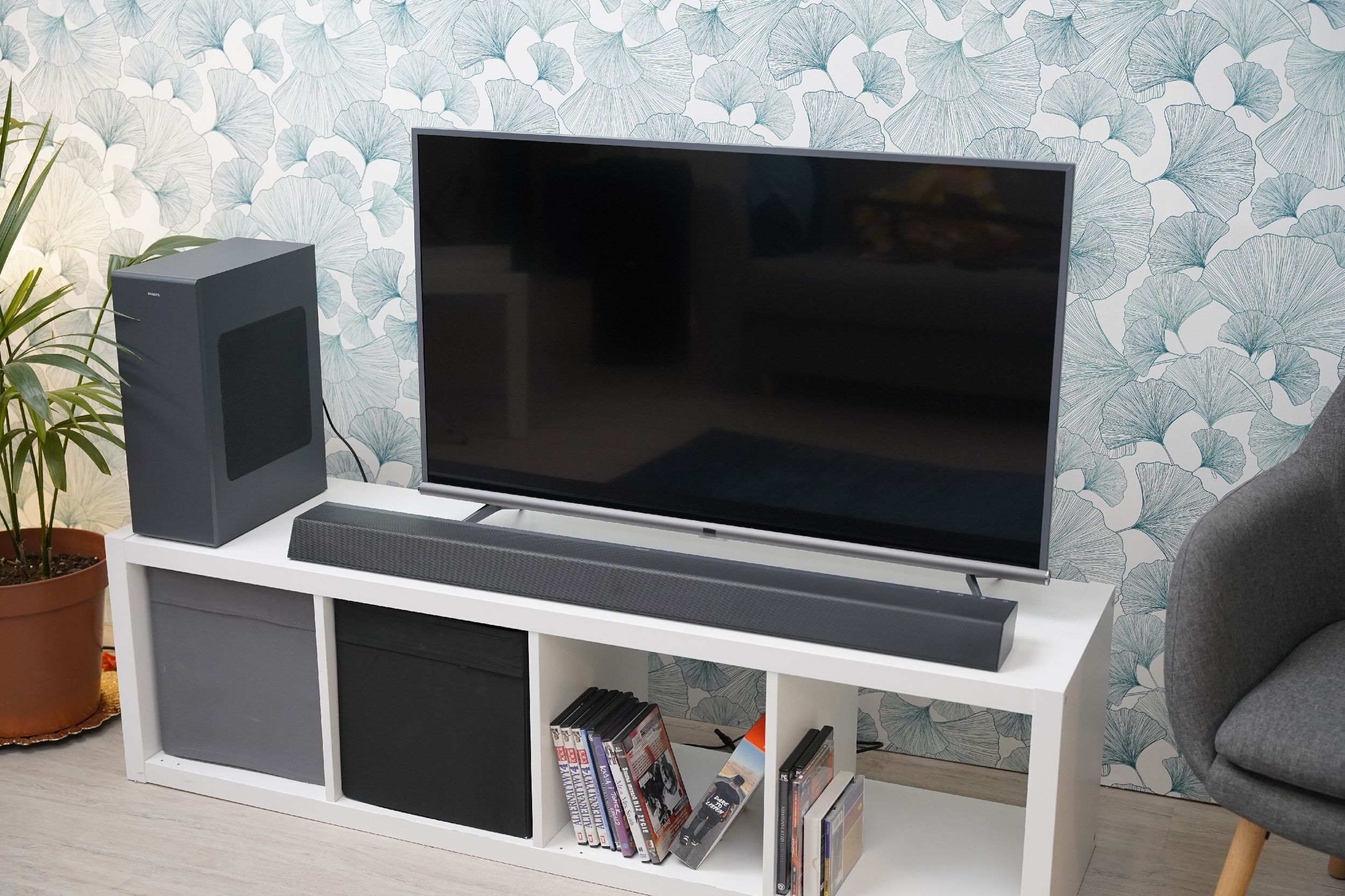 Ten głośnik soundbar zapewnia 300 W bogatego dźwięku we wszystkich filmach i utworach. Kanały 3.1 wypełniają każde pomieszczenie czarującymi ścieżkami dźwiękowymi, potężnymi efektami i wyraźnymi dialogami. Bezprzewodowy subwoofer sprawia, że każdy wybuch i każdy rytm są bardziej wyraziste. Podgrzej atmosferę niezależnie od tego, co oglądasz. Ten zgodny z systemem Dolby Atmos soundbar odtwarza głębię i wysokość, tworząc wirtualny, trójwymiarowy dźwięk przestrzenny, który rozchodzi się w górze i wokół.