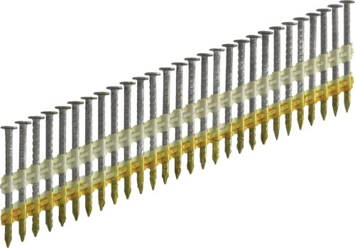 Gwoździe te posiadają ząbkowany trzon, co zwiększa ich przyczepność w materiałach budowlanych. Kąt kolacji wynoszący 21° oraz diamentowa końcówka o kącie 40° sprawiają, że ich użycie jest łatwe i efektywne, co przekłada się na szybsze i bardziej precyzyjne mocowanie.