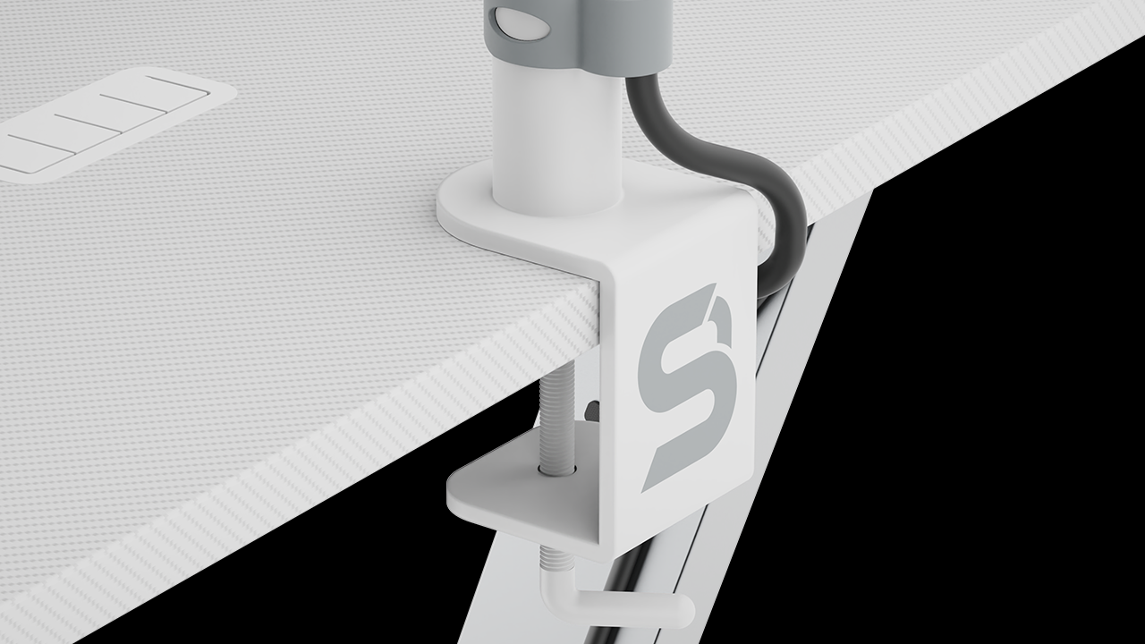 Uchwyt SPC Gear Atlas 100 Onyx White jest bardzo prosty w montażu — wystarczy przykręcić go do krawędzi biurka w dogodnym miejscu. Uchwyt może zostać zamontowany na blatach nieprzekraczających 60 mm grubości. Szeroki zacisk równomiernie rozkłada nacisk i zapewnia stabilną pozycję monitora.