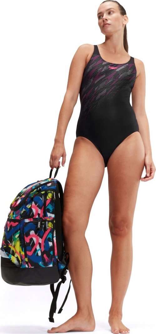 Damski strój kąpielowy Speedo HYPERBOOM PLMT MSBK AF to znakomity wybór dla każdej pływaczki, która ceni sobie zarówno estetykę, jak i funkcjonalność. Jego nowoczesny design z wyrazistymi wzorami wyróżnia go spośród innych strojów, a jednocześnie zapewnia wygodę podczas pływania.