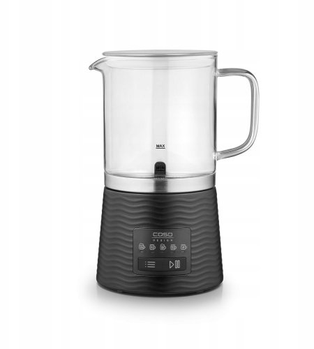 Spieniacz CASO CappuLatte wyróżnia się nowoczesnym designem w kolorze czarnym z elementami ze stali nierdzewnej. Wyposażony w zdejmowany, przezroczysty pojemnik na piankę, umożliwia precyzyjne nalewanie oraz obserwację konsystencji przygotowywanego napoju, co sprawia, że korzystanie z niego jest nie tylko praktyczne, ale i estetyczne.