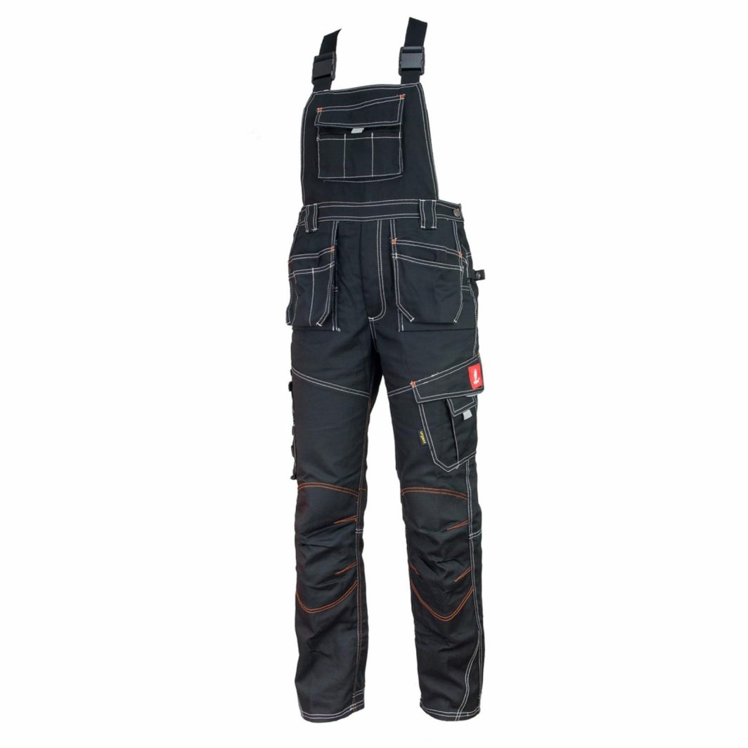 Spodnie robocze ogrodniczki kieszenie wielofunkcyjne pancerne wzmocnione szwy ekstremalna odporność na rozdarcia przecięcia branża budowlana remontowa mechanicy URG-B-BP 44