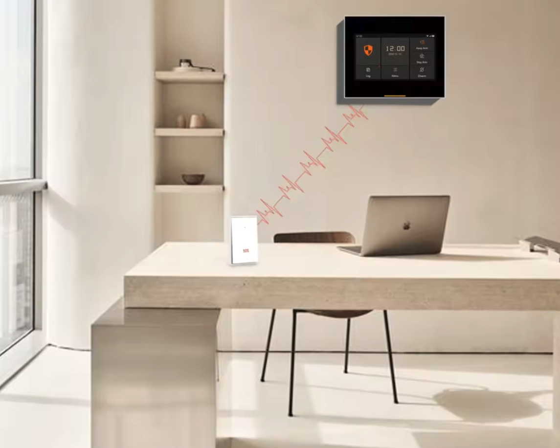 Współpracuje z systemami alarmowymi dostępnymi w naszej ofercie m.in. H700, H501 oraz innymi alarmami GSM i Wi-Fi pracującymi na częstotliwości 433 mHz. W celu alarmowania przycisk SOS musi być sparowany z systemem alarmowym bezprzewodowo poprzez częstotliwość 433mHz.