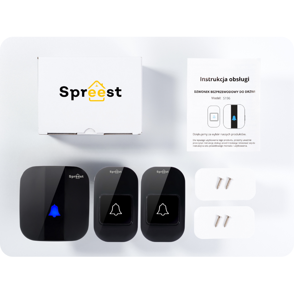 Spreest Dzwonek bezprzewodowy do drzwi + 2x nadajnik 300m