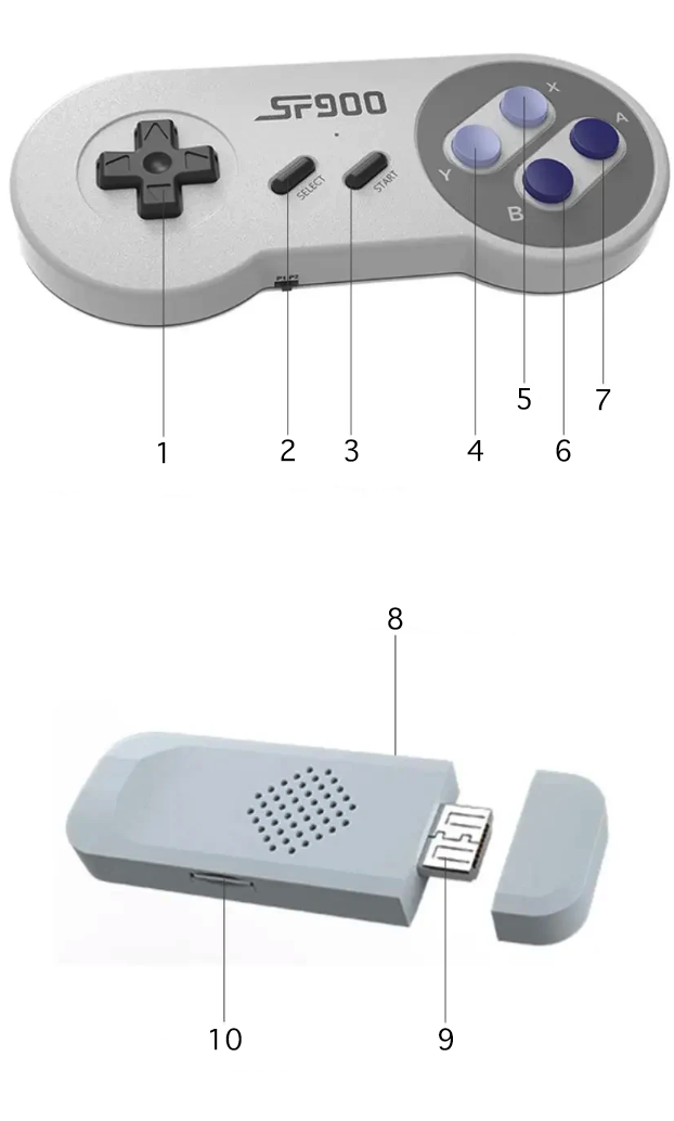 1. Krzyżak (D-pad) - Umożliwia kierunkowe sterowanie w grach.