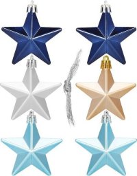 Springos Bombki choinkowe 6 szt. gwiazdki ozdoby świąteczne zestaw niebieski UNIWERSALNY