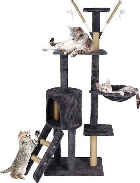 Springos Drapak dla kota 6-poziomowy słupek z domkiem 145 cm grafitowy