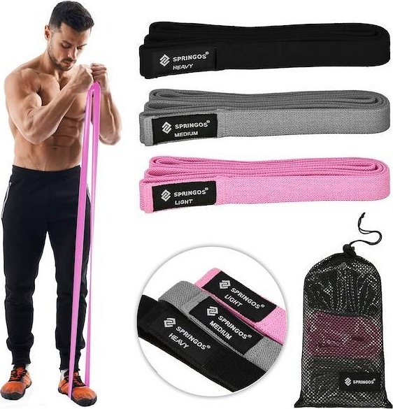 Springos Guma do ćwiczeń Hip Band 2x 100 cm szara/różowa/czarna zestaw 3 szt. guma oporowa UNIWERSALNY