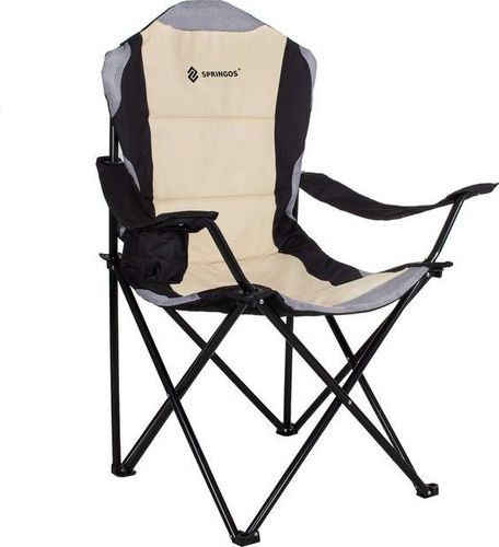 Springos Krzesło turystyczne składane wędkarskie kremowo-szaro-czarne UNIWERSALNY