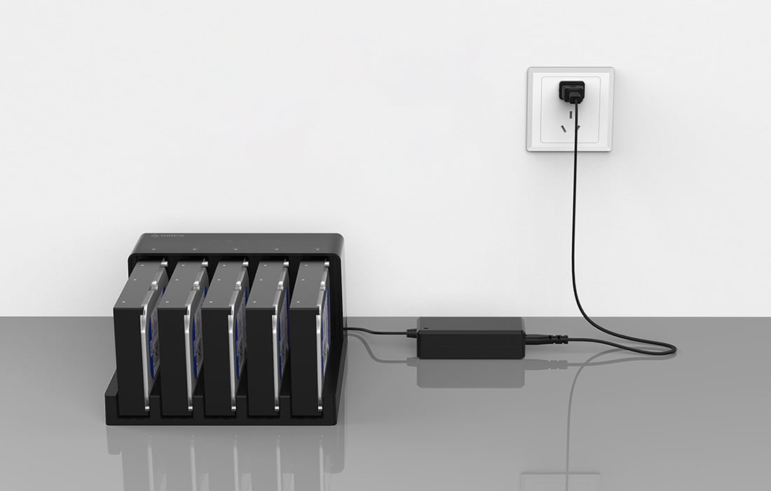 Zewnętrzny zasilacz 12V/6,5A dba o stabilne napięcie – nawet gdy pracujesz z pięcioma dyskami naraz. To bezpieczeństwo Twoich danych i gwarancja nieprzerwanej pracy.
