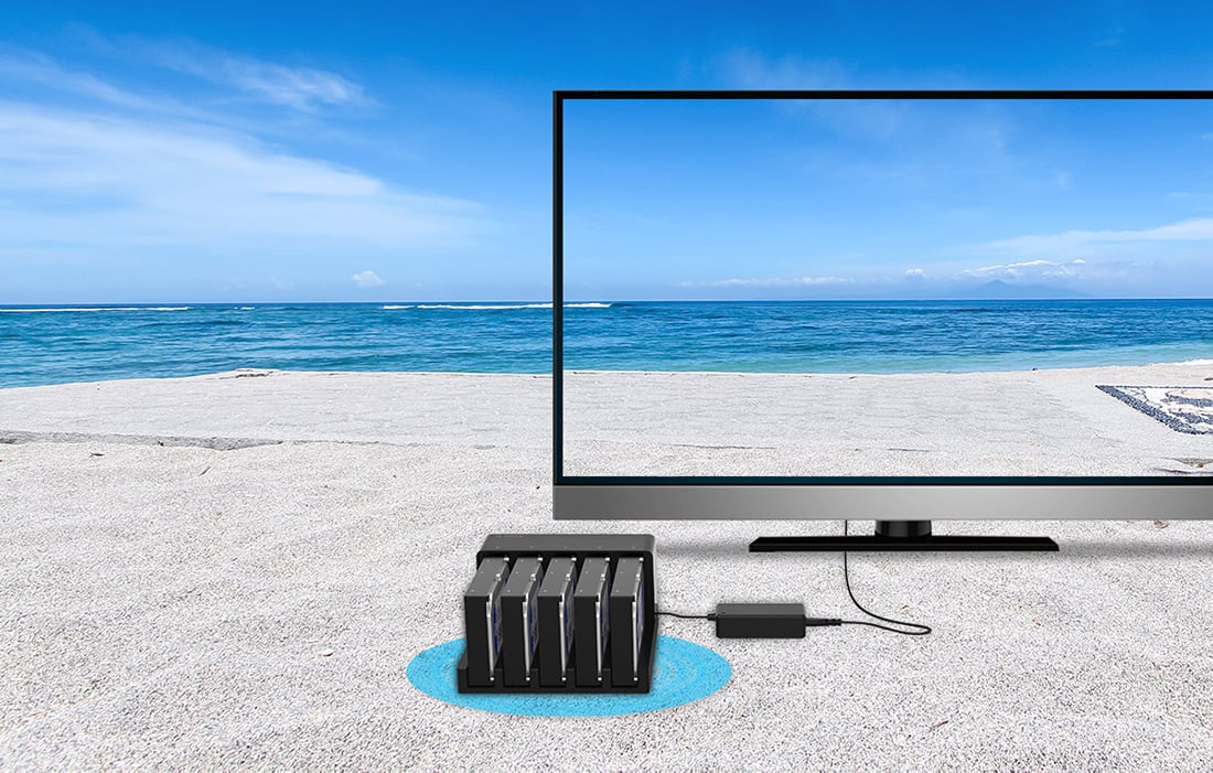 W obudowie Orico zainstalujesz do pięciu dysków SATA w formacie 2,5" lub 3,5", każdy o pojemności do 18 TB. To oznacza nawet 90 TB przestrzeni na dane – czy prowadzisz archiwum multimedialne, centrum backupowe czy repozytorium danych klientów.