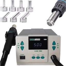 Solidna konstrukcja stacji, z metalową obudową i gumowymi nóżkami, zapewnia stabilne i bezpieczne operacje lutowania. Urządzenie doskonale sprawdza się przy pracy z elementami SOIC, CHIP, QFP, PLCC, BGA oraz może być używane do takich zastosowań jak nagrzewanie, dezynfekcja, usuwanie lakieru i wiele innych.