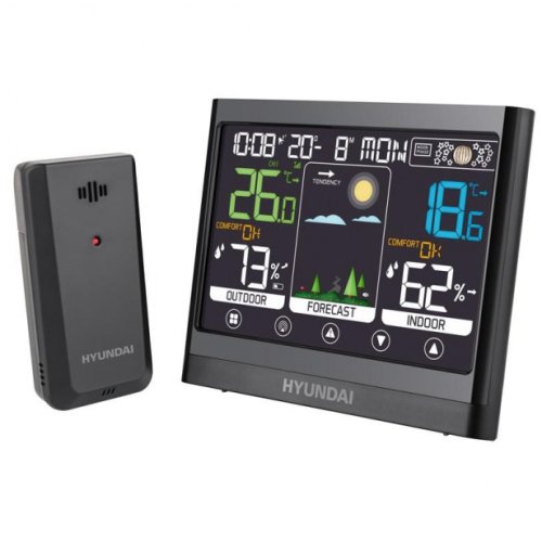 Stacja meteo Hyundai WS2450 wyróżnia się minimalistycznym wyglądem, który idealnie komponuje się z nowoczesnymi wnętrzami. Jej kolorowy wyświetlacz LCD zapewnia doskonałą czytelność, a intuicyjny interfejs sprawia, że obsługa urządzenia jest niezwykle prosta.