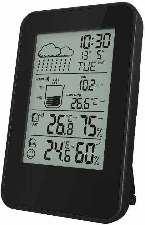 WSR-560 oferuje dokładne pomiary temperatury i wilgotności, co pozwala na skuteczne zarządzanie klimatem w Twoim otoczeniu. Dodatkowo, stacja wyposażona jest w czujnik deszczu, który monitoruje ilość opadów w różnych okresach, takich jak godzina, dzień, tydzień oraz całkowita suma. Dzięki tym funkcjom, zawsze będziesz na bieżąco z warunkami atmosferycznymi, co jest szczególnie przydatne przy planowaniu aktywności na świeżym powietrzu.