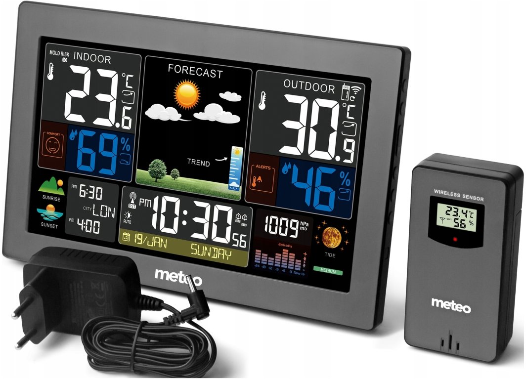 Stacja pogody Meteo SP-96 nie tylko mierzy aktualne warunki, ale także prognozuje pogodę na podstawie zebranych danych. Dzięki temu zawsze będziesz na bieżąco z nadchodzącymi zmianami atmosferycznymi, co ułatwi planowanie codziennych aktywności.