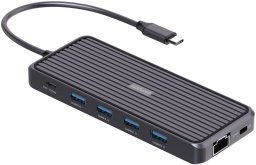 Stacja dokująca 4smarts oferuje bogaty zestaw portów, co umożliwia podłączenie różnorodnych urządzeń peryferyjnych. W skład 11 portów wchodzą: